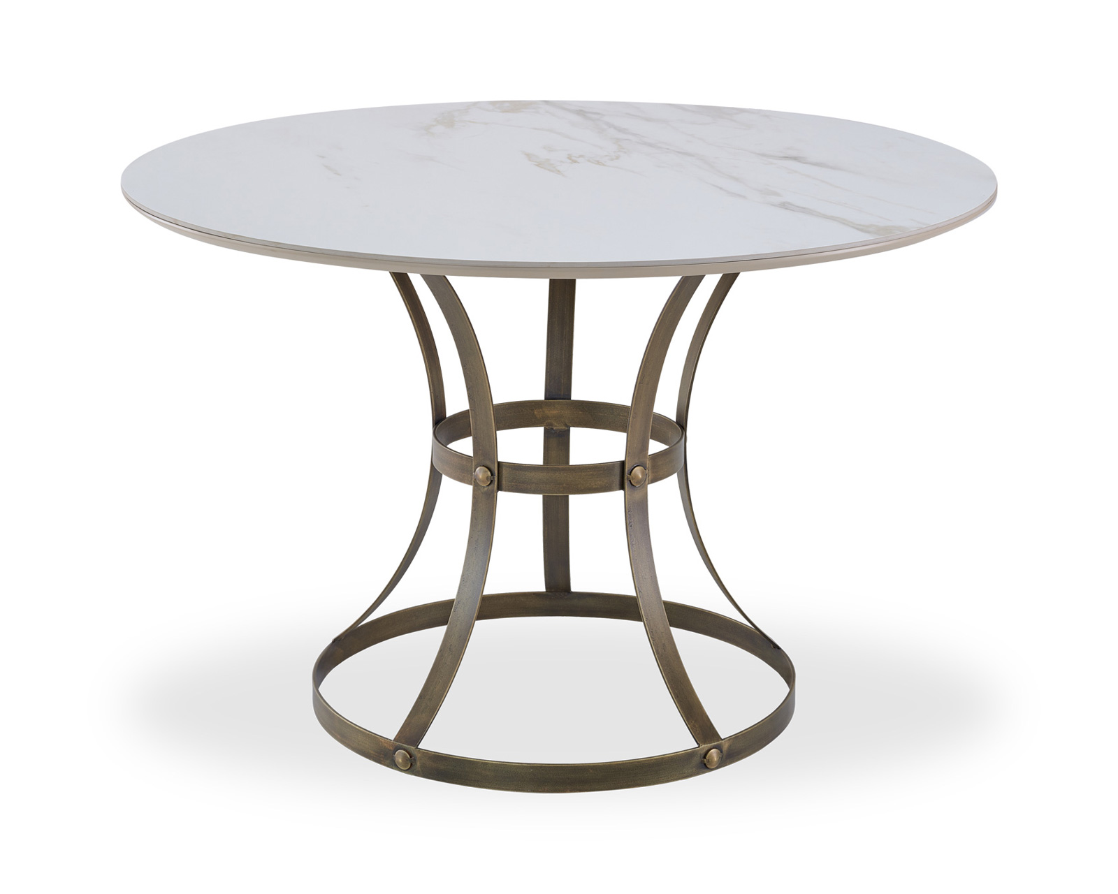 Στρογγυλή τραπεζαρία ελληνικής κατασκευής με μεταλλική βάση και κεραμικό καπάκι .Δυνατότητα επιλογής διαστάσεων και χρωμάτων.