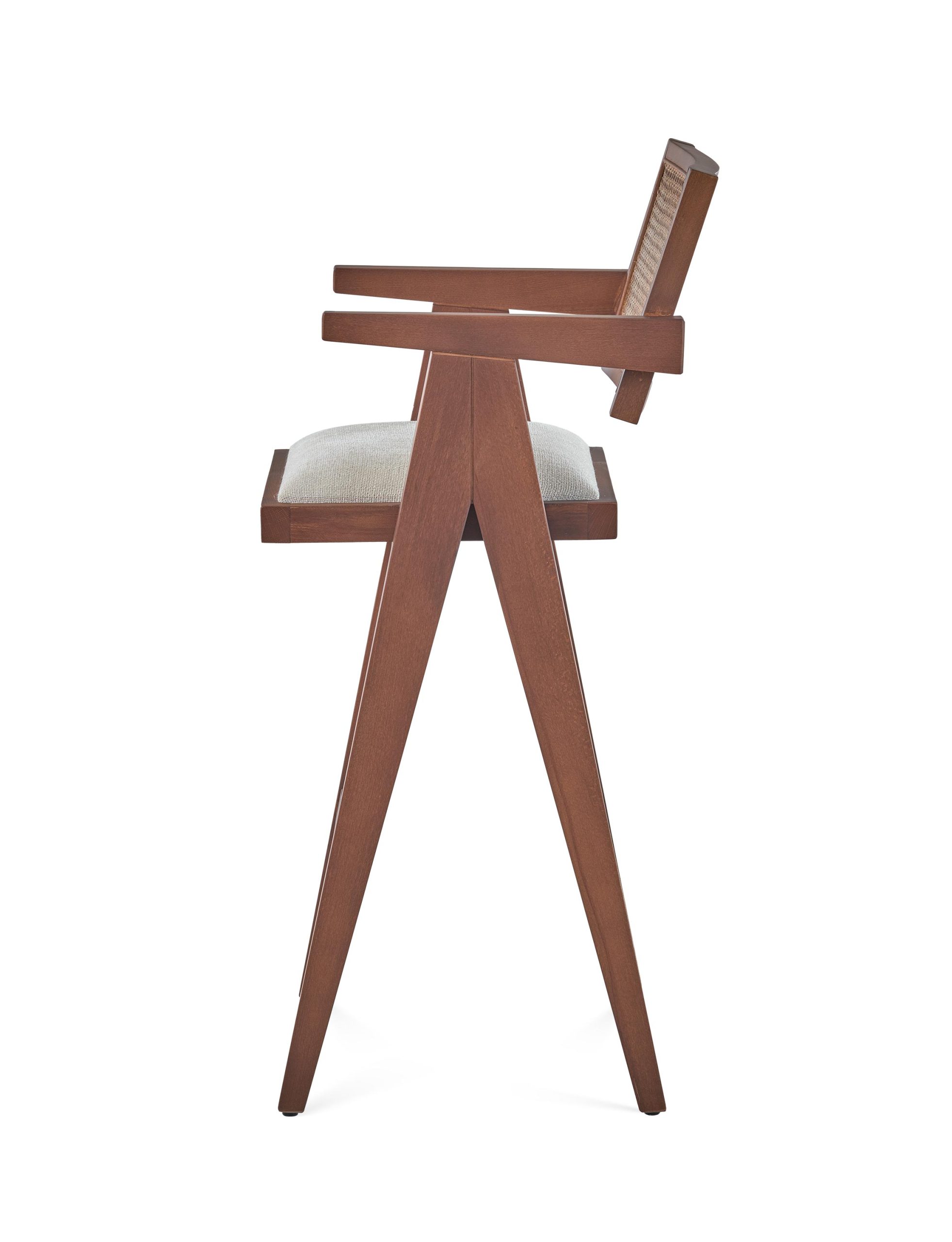 Σκαμπό ελληνικής κατασκευής από μασίφ ξύλο με ταπετσαρία στο κάθισμα και στην πλάτη. Δυνατότητα επιλογής χρωμάτων και ταπετσαρίας.